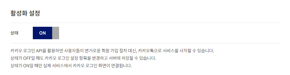 마지막으로 그 위에 있는 활성화 상태를 ON으로 설정해준다.