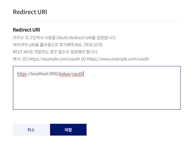 를 등록해야 한다고 나온다. 카카오 인증 후에 콜백받을 URI를 지정해주면 된다.