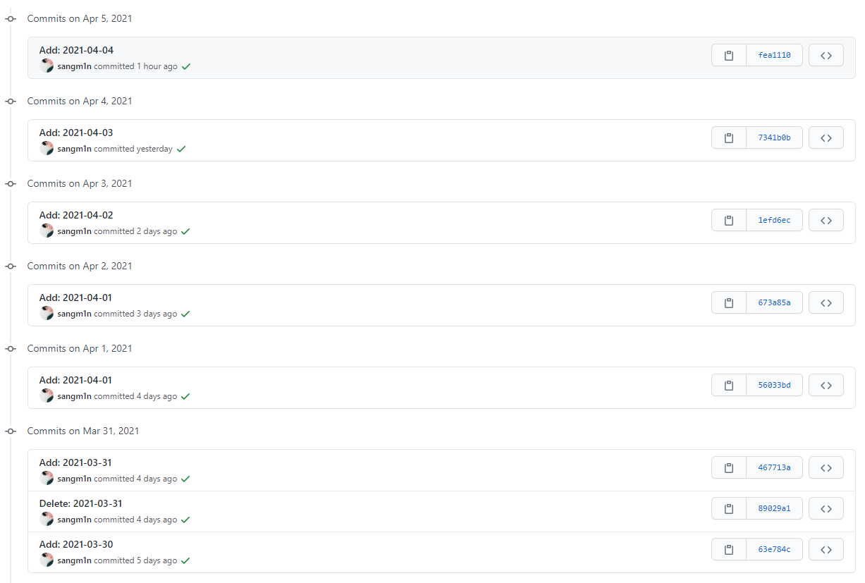 커밋 히스토리에서 볼 수 있듯이 화요일인 30일부터 오늘까지 하루도 빠지지 않고 문제를 풀었다. 월요일은 생일이라 놀았다.
