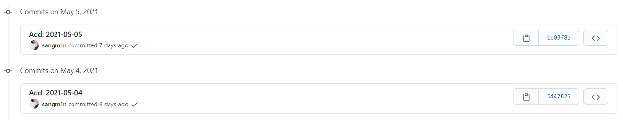 | [주간 회고] 2021년 5월 둘째 주 (0) | 2021.05.16 |