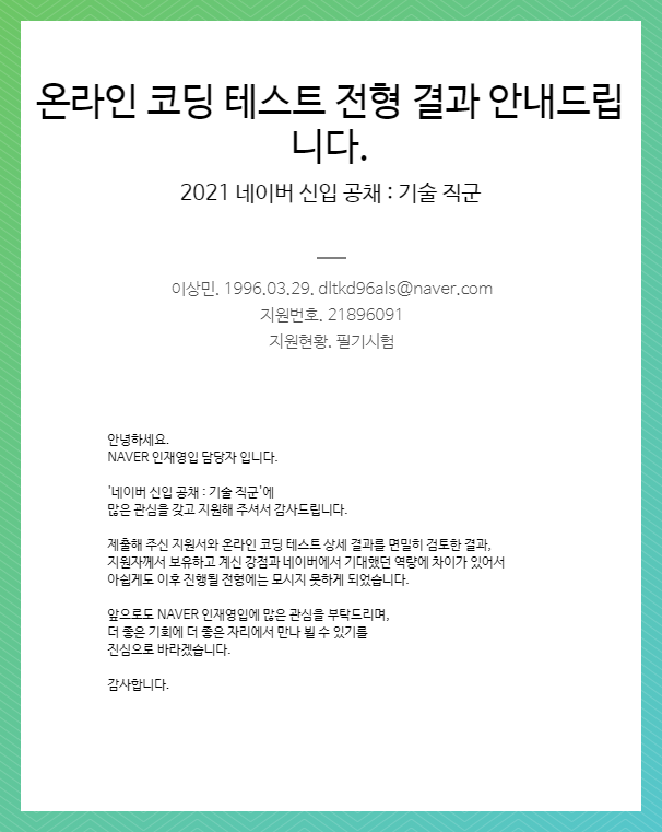 그래도 최선을 다해 임했고 내가 한 답변들에 대한 후회는 없다. 결과가 어찌되든 나중에 후기를 자세히 남겨야지.