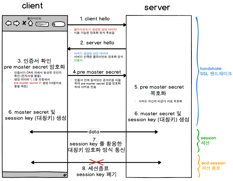- 세션이 종료되면 클라이언트와 서버 모두 세션 키를 폐기한다.